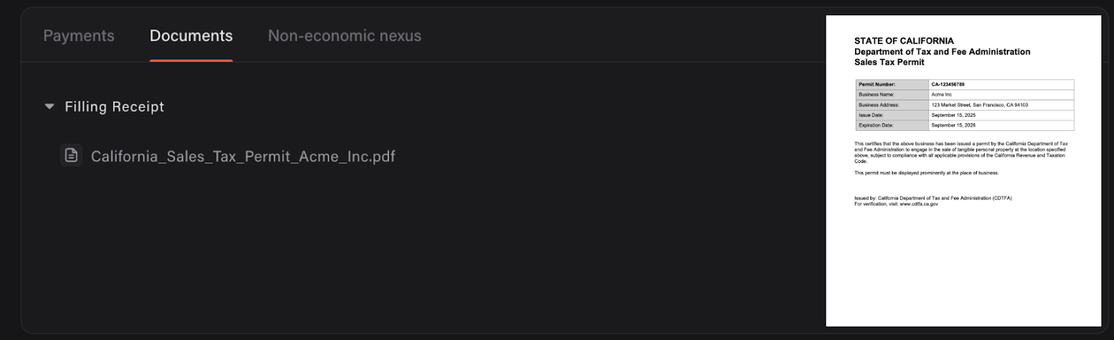 After our team has worked its magic and the registration is complete, your official sales tax permits are delivered straight to your dashboard.