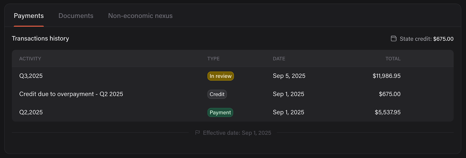 Filing and remitting: At each period’s deadline, the platform calculates what’s due and lets you review filings before they’re submitted. Once approved, Firstbase remits payments through state portals on your behalf, closing the loop.